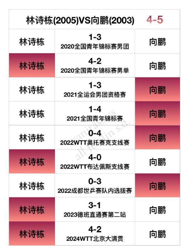 林诗栋也表示自己作为海南省唯一的乒乓球运动员登台就是努力拼每一分,他希望自己能走得更远。一位博主统计了林诗栋与同期的国乒选手交手战绩。